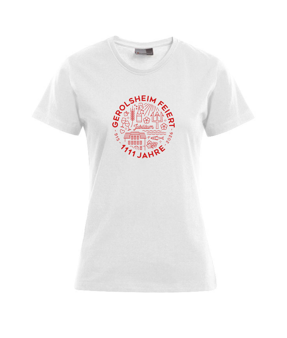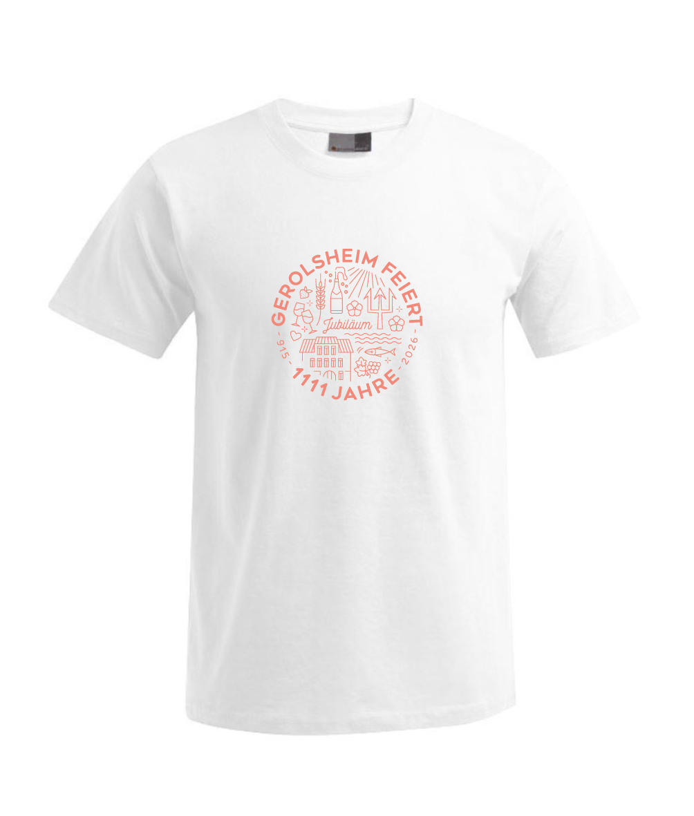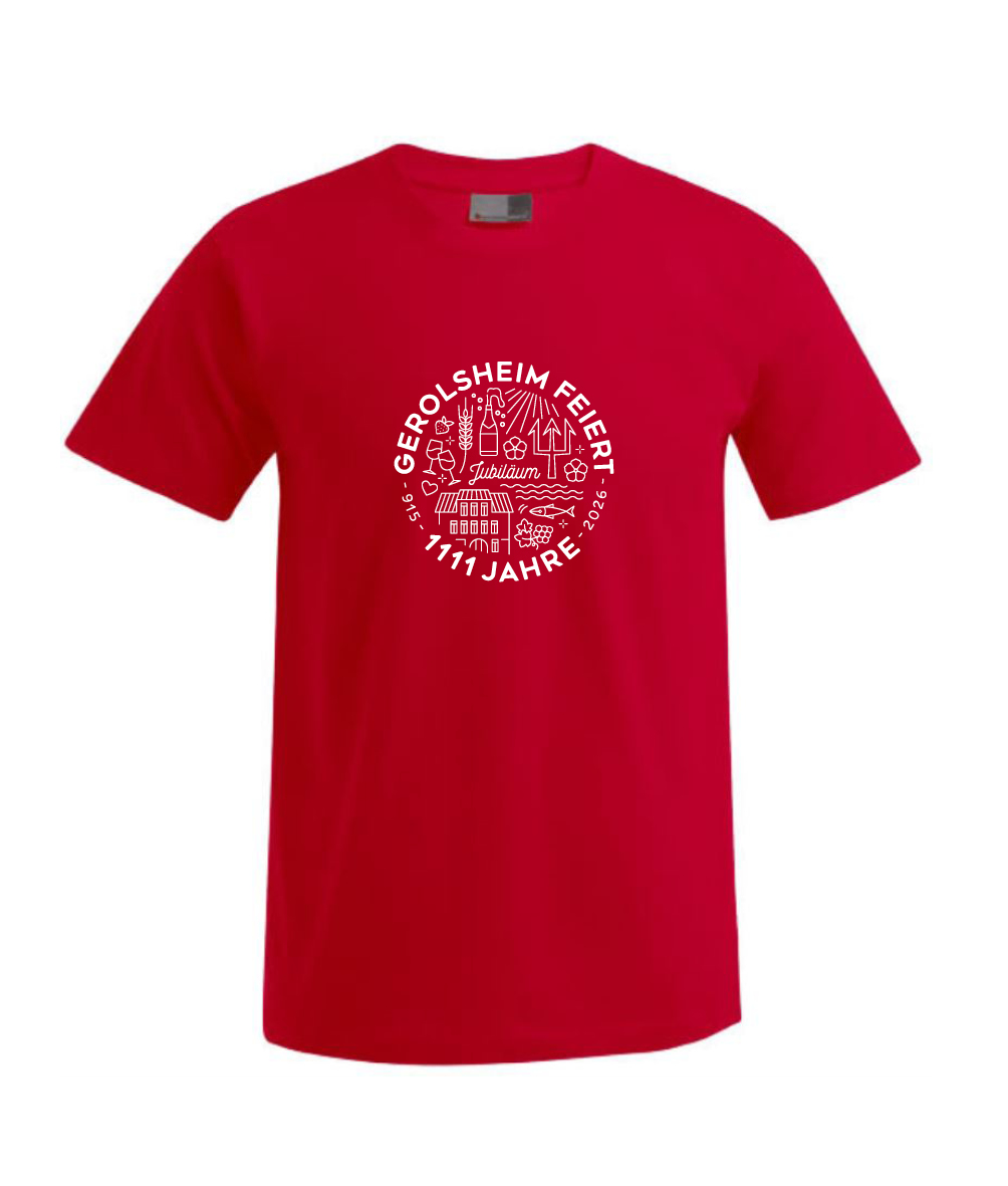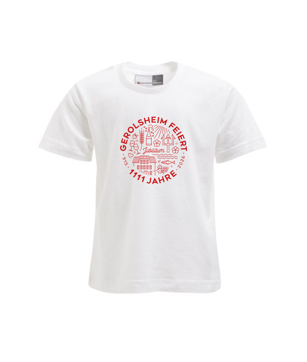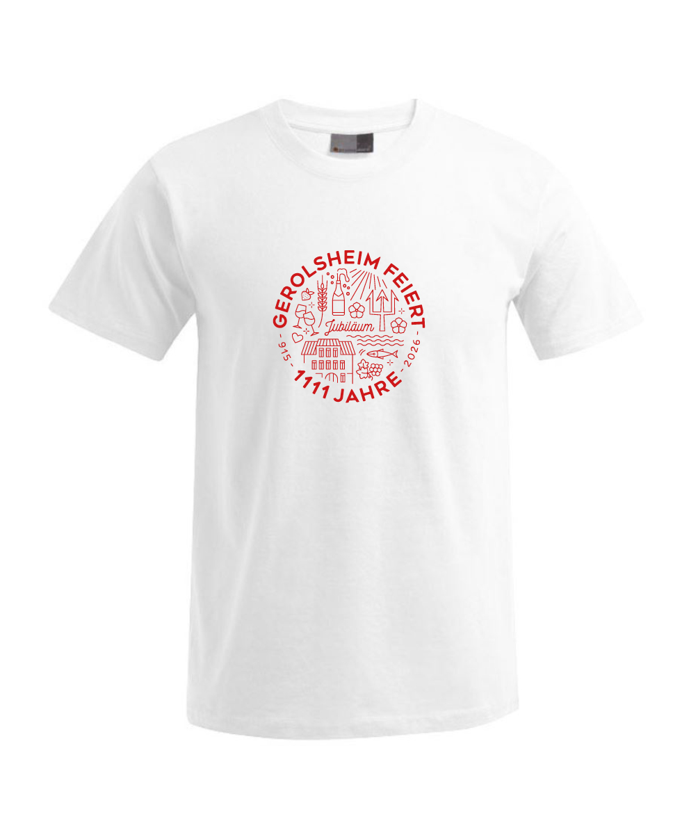 T-Shirt Jubiläum 1111 Jahre Gerolsheim weiß mit rotem Aufdruck ca 20cm